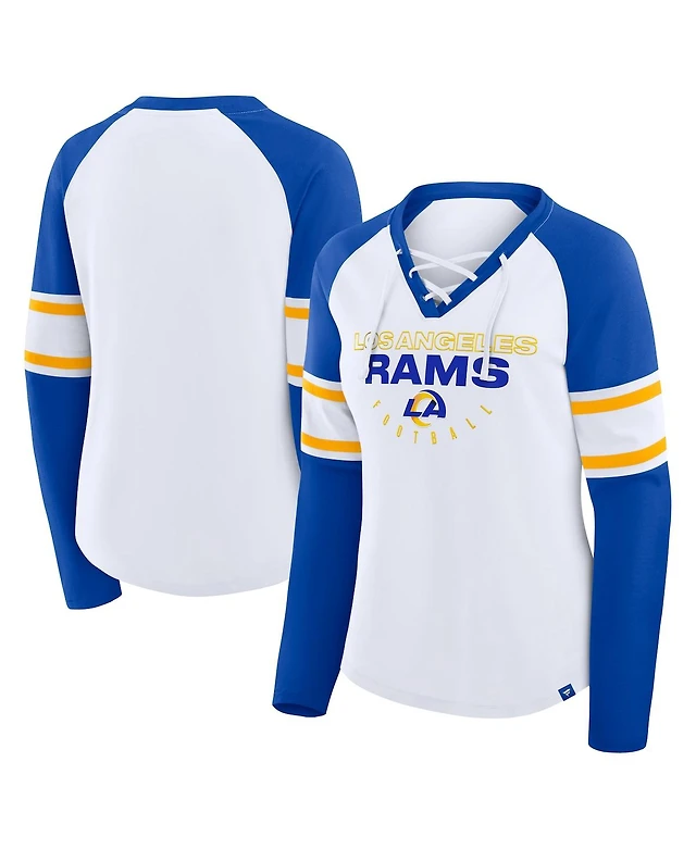 Fanatics Women's White/Royal Los Angeles Rams Redzone Blitz Package Raglan Lace-Up V-Neck Long Sleeve T-Shirt