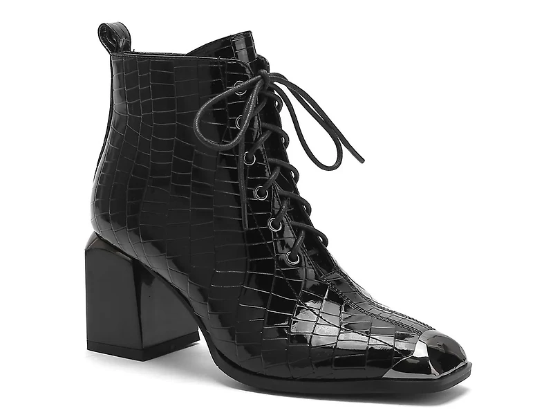 Take your ankle boot collection to the next level of chic with the Fantastic bootie from Ninety Union. The metallic cap toe, unique block heel, and croc-embossed upper make this pair pop.
