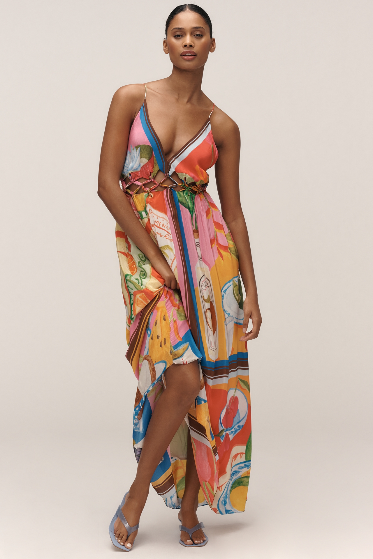Farm Rio Sleeveless V-Neck Cutout A-Line Maxi Dress