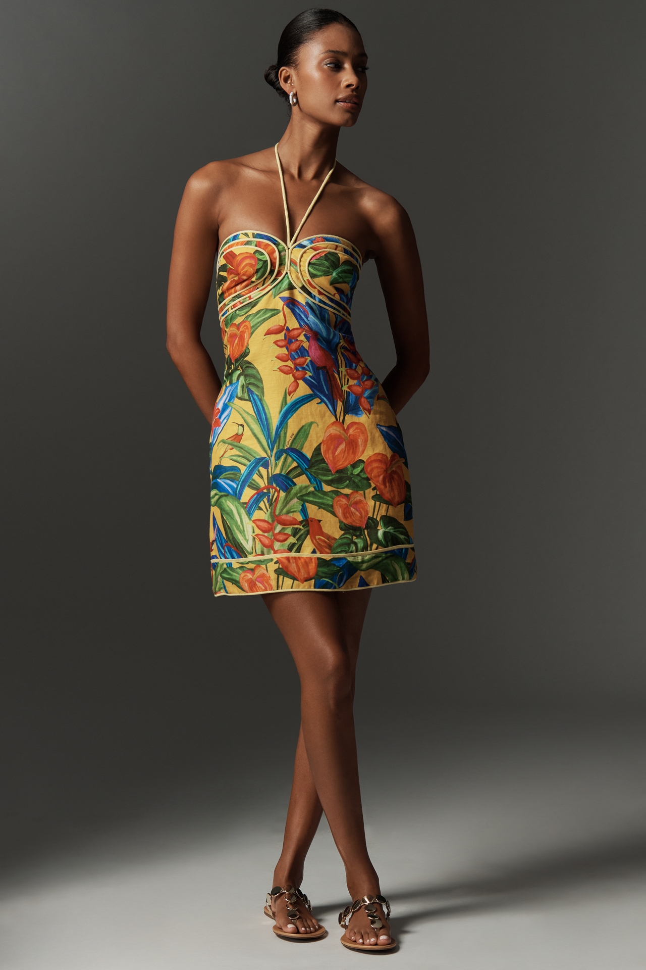 Farm Rio Bright Nature Linen Halter Mini Dress