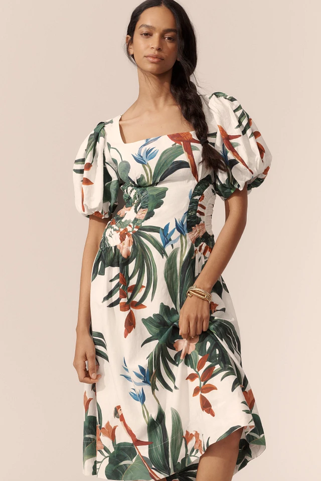 Farm Rio x Anthropologie Puff-Sleeve Printed Midi Dress