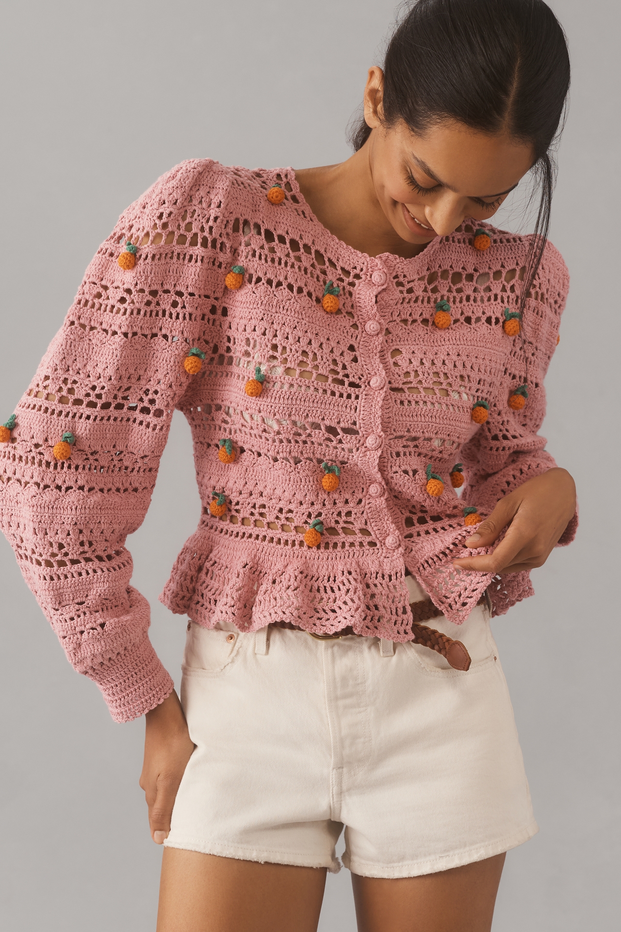 Farm Rio Orange Tassel Crochet Cardigan Sweater