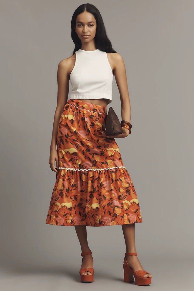 Farm Rio x Anthropologie Printed Poplin Midi Skirt