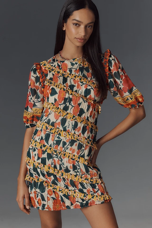 Farm Rio x Anthropologie Puff-Sleeve Fitted Mini Dress