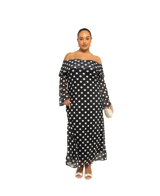 Fashion-szn Curve Women's Off The Shoulder Polka Dot Midi Dress