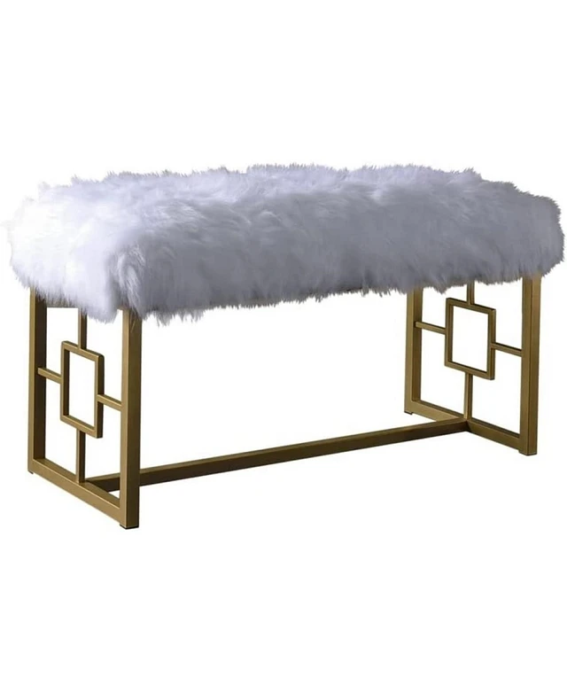 Faux Fur Accent Bench – Upholstered Seat for Living Room or Vanity