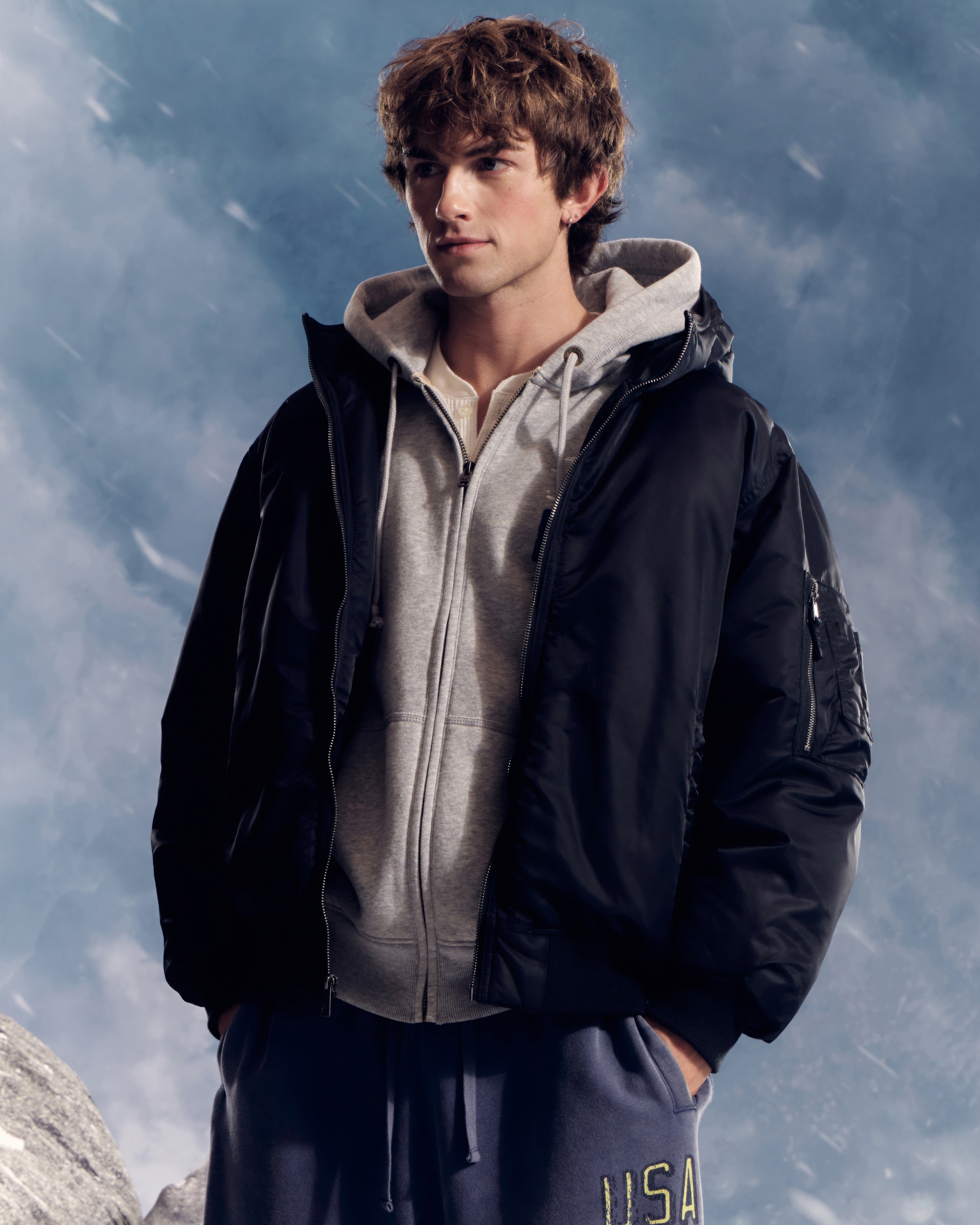 Ninth Hall Ayla Faux Fur Trim Black Hooded Bomber Jacket