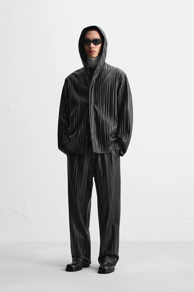 FAUX LEATHER PLEATED OVERSHIRT