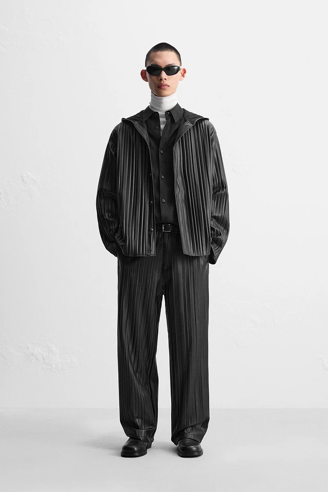 TEXTURED PLEATED PANTS