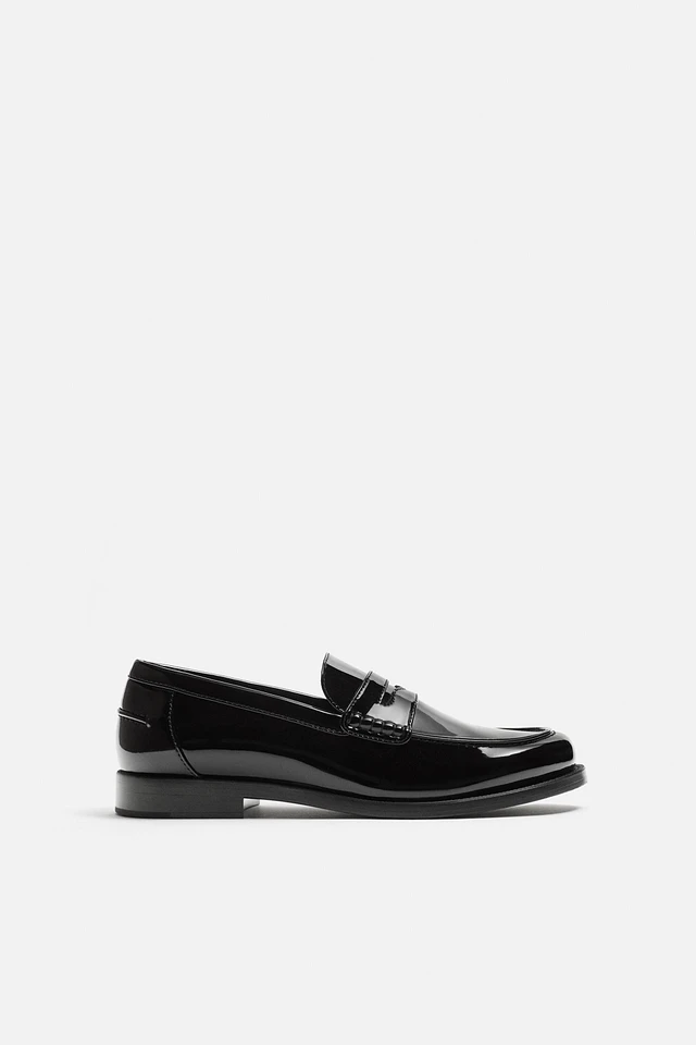 FAUX PATENT LEATHER PENNY LOAFERS
