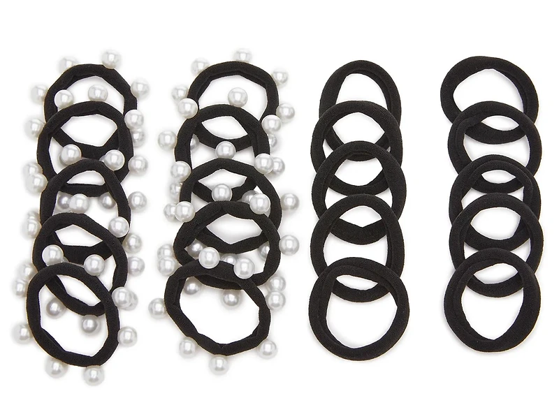 Pull your hair back in chic style with this hair tie set from Kelly & Katie. Featuring a seamless design made from a soft fabric to prevent damage. Half of the pack features faux pearl embellishments for added style.