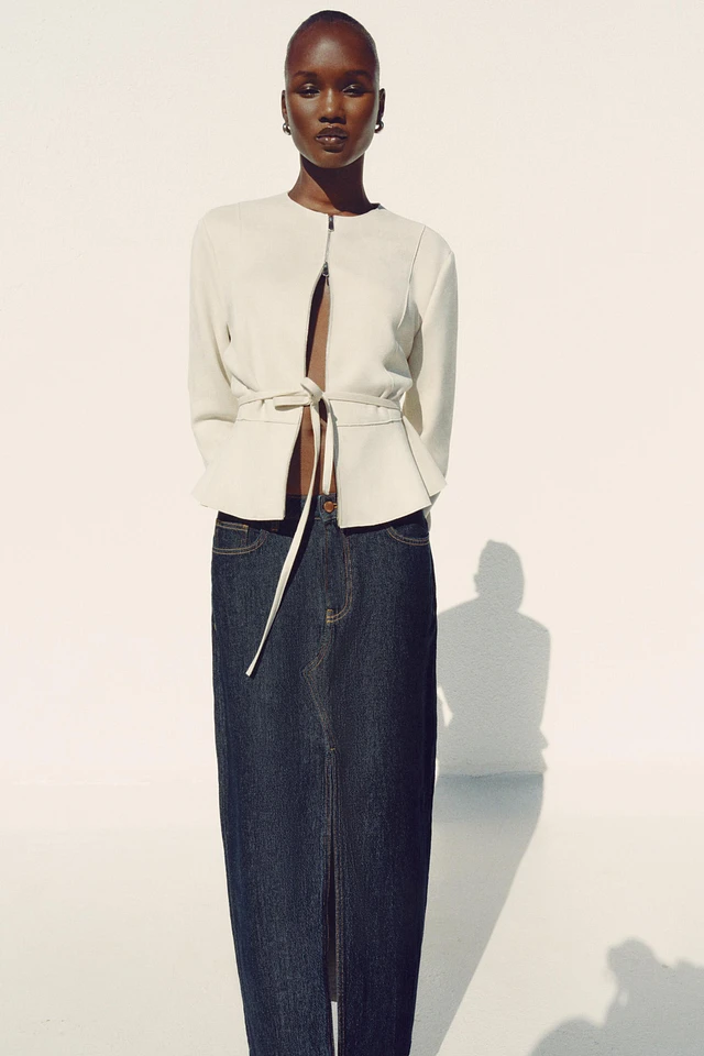 FAUX SUEDE PEPLUM JACKET