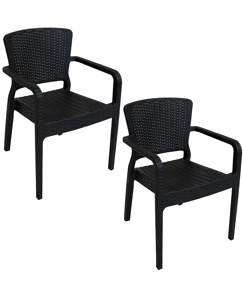 Give any indoor, outdoor dining or seating space a stately charm with the Segonia dining armchair. This chair brings together the art and style of wicker without the maintenance. This plastic wicker is durable against the elements outdoors, is smooth to the touch, and won't break, chip, or crack like natural wicker, ensuring long-lasting use year after year! It features a 100 percent virgin fiberglass and polypropylene construction for robust strength, ease of maintenance, and ease of use. It offers ergonomic and comfortable seating for inside or outside the home so it can easily be used on the patio, deck, in the garden or in indoor living and dining areas. This set also features armrests for the best, comfortable seating when reading a book or just relaxing.
