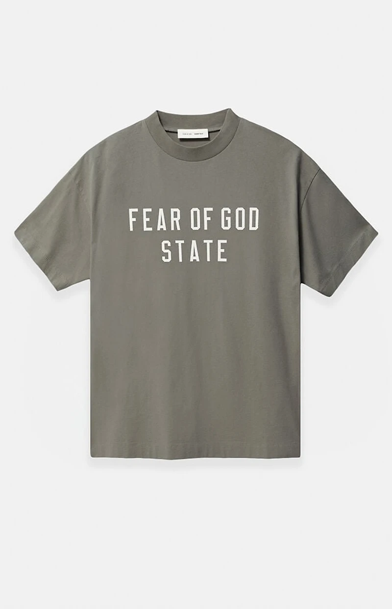 The Moss '90s Fit T-Shirt from Fear of God ESSENTIALS delivers elevated streetwear with an oversized silhouette and dropped shoulders for a relaxed, confident look. A bold Fear of God State front graphic and tonal rubberized logo at the back complete this understated essential.