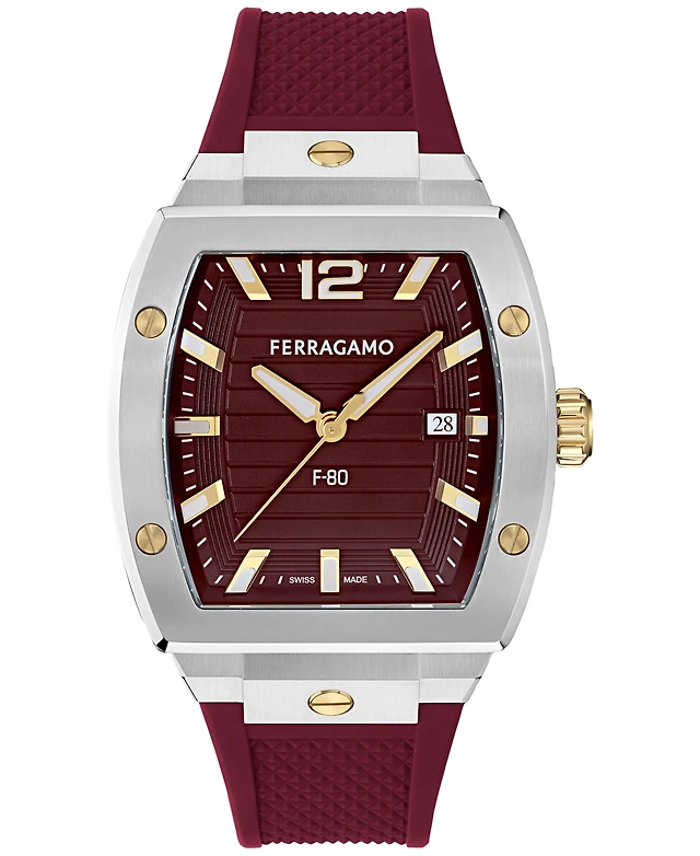 Ferragamo Men's Swiss F-80 Tonneau Burgundy Polyurethane Strap Watch 42mm