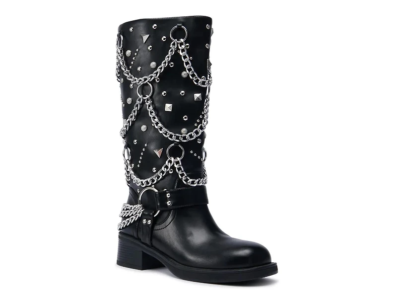Show off your edgier side in the Fillmore boot from Azalea Wang. This moto-inspired pair sports chainlink touches and studded details for a punk rock vibe to go along with a night-out ensemble.