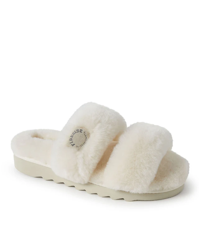 Fireside by Dearfoams Women's Benalla Genuine Shearling Double Band Fuzzy Slide Slipper