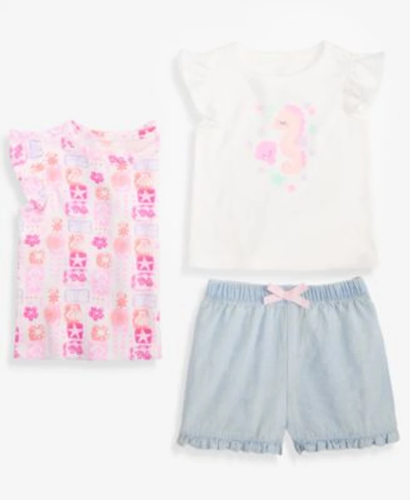 First Impressions Baby Girls 3m 24m Mix Match Seahorse Flutter Sleeve Tops Chambray Shorts Macys Exclusive