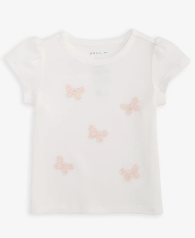 First Impressions Baby Girls Short Sleeve Embroidered Butterflies T-Shirt