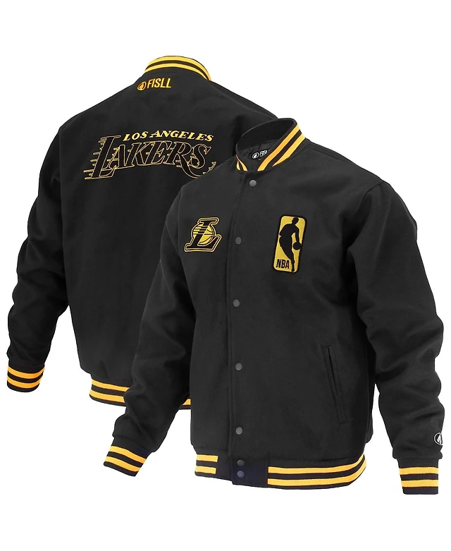 Fisll Men's and Women's Black Los Angeles Lakers Logo Man Shadow Collection Full-Snap Varsity Jacket
