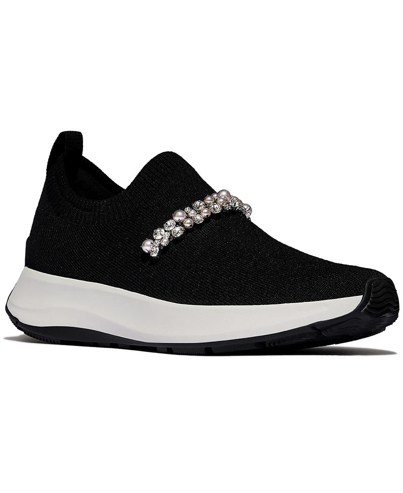 FitFlop Women's F-Mode Flow Imitation Pearls and Crystal Knit Slip-On Sneakers