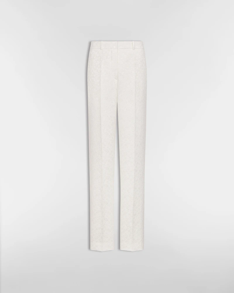 Unveiled at the Cruise 2026 Fashion Show, the pants showcase Pietro Ruffo's Millefiori motif, inspired by baroque paintings. Crafted in ecru cotton and silk with Provençal-effect quilting, they feature a regular-fit silhouette completed by side pockets and a back pocket for a practical touch. The pants can be paired with the matching jacket to complete a Millefiori look.