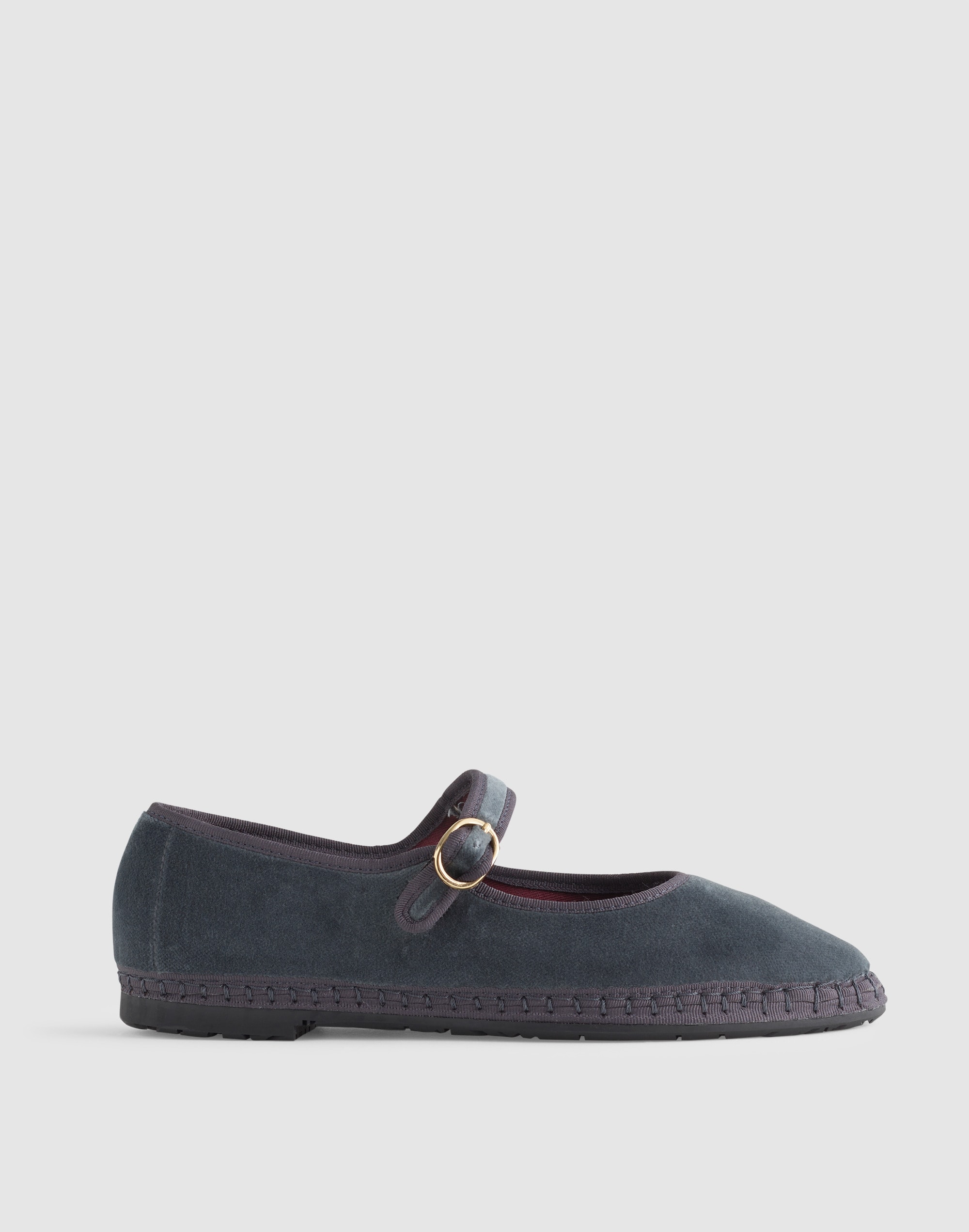 Founded in 2020, footwear brand Flabelus is all about creating styles using traditional shoemaker techniques inspired by their Spanish roots. Designed with a rubber sole made from recycled bicycle tires, these velvet Mary Janes are trimmed with tonal piping and lined with antibacterial organic cotton.