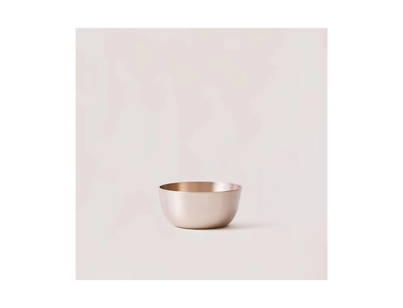 Rooted in India, our Bronzeware Collection is made using traditional techniques with a focus on crafting beautifully sculptured and functional tableware that can be passed down for generations. The weighted bronze is opulent to the touch and the clean lines lend it a contemporary sculptural sensibility. Compliments any food choices perfectly.Dimensions: 3. 5 x 1. 75"Weight: 0. 7 lbs