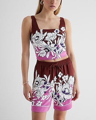 Featuring a bold floral print on a color block background, this cropped square neck tank is a modern must-have for warm weather days. Pair this top with the matching shorts for a coordinated look, or style separately with dress pants for sophisticated styling.