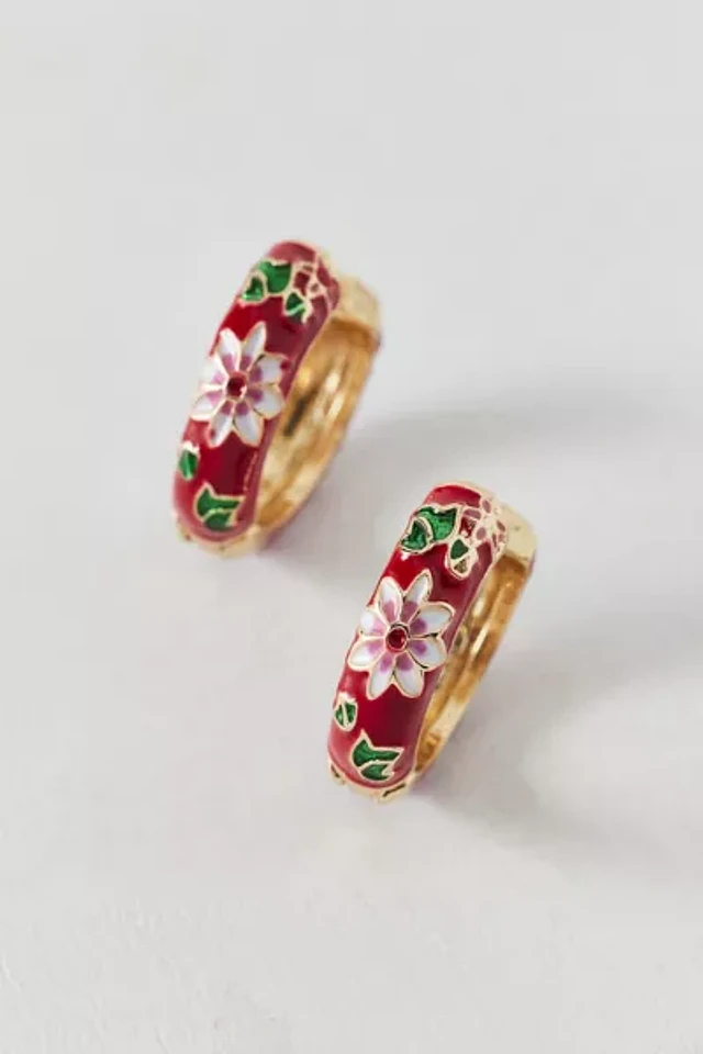 Floral Enameled Hoop Earring