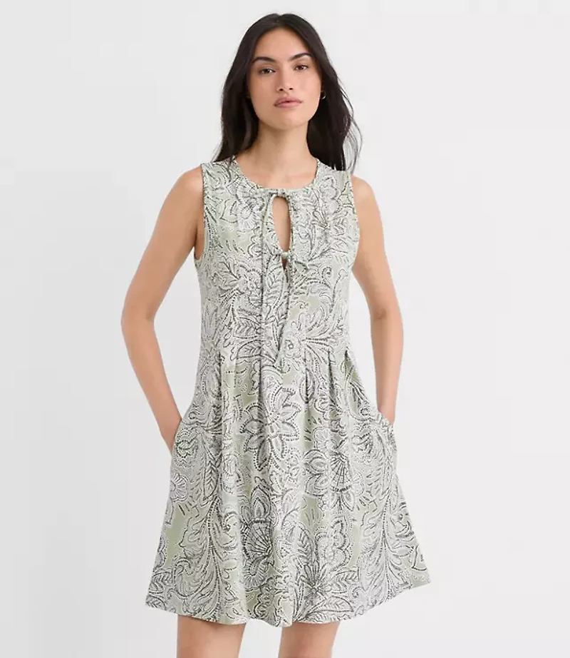 Bow - tied and pintucked, we love the irresistibly lovely and laid - back polish of this soft cotton blend knit. Crew neck with ties. Sleeveless Onseam pockets, Imported:, Fit: Swing - fits loose and swingy, Length: 33 1/2"from center back neck to hem, measured from a size 8 / M, Fabrication: 57% Cotton 38 Modal 5 Spandex, Garment Care: Machine Washable Loft Floral Pintucked Bow Mini Pocket Dress Size 2XS Pistachio Brittle Women's by Loft Size Regular - 2XS Pistachio Brittle Women's Swing, Dresses Everyday 57% Cotton 38% Modal 5% Spandex Machine Washable