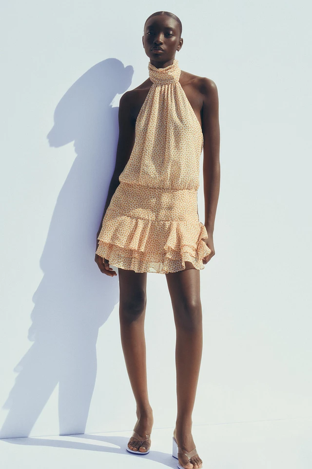 FLORAL PRINT RUFFLE MINI DRESS