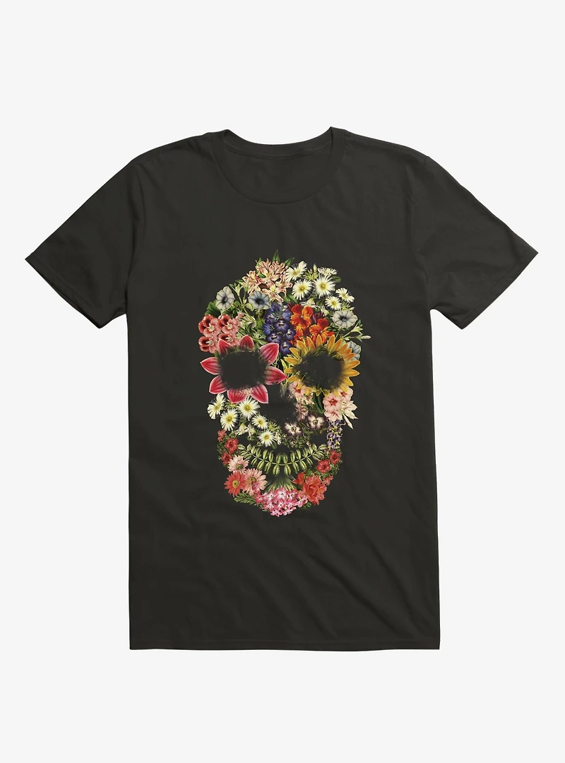 Floral Skull Vintage Black T-Shirt