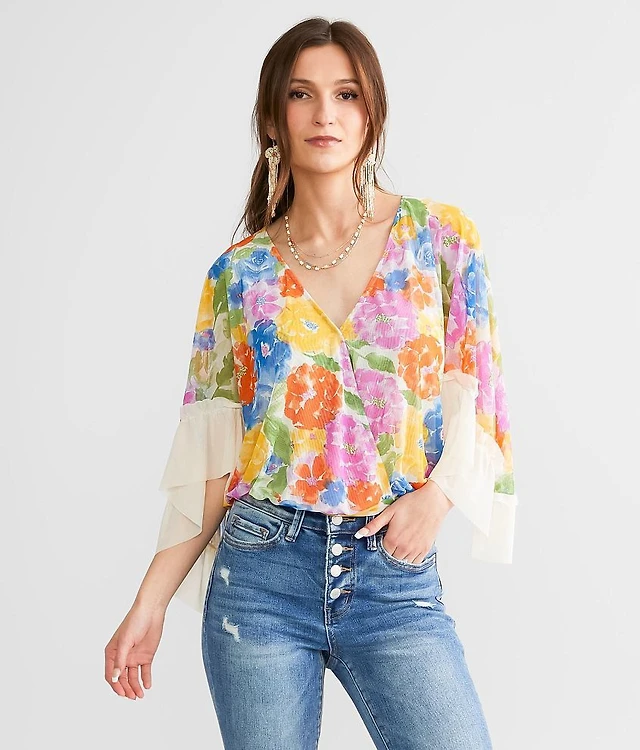 Floral Mesh Surplice Top
