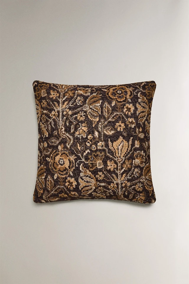 EMBROIDERED FLORAL THROW PILLOW COVER