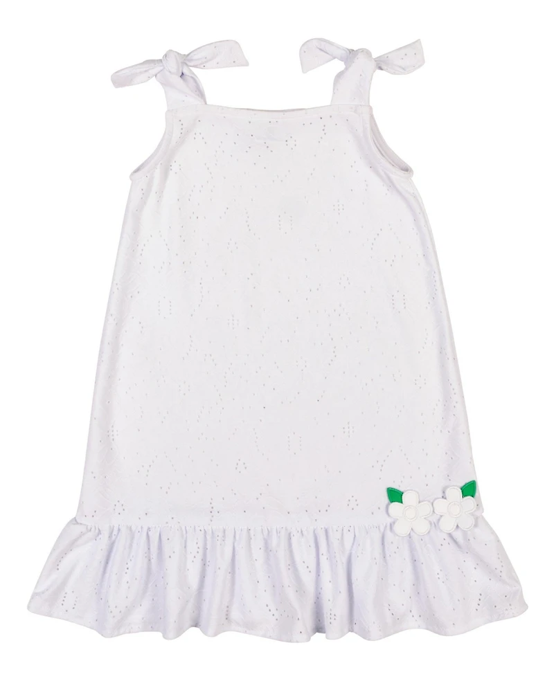 Light, breezy, and vacation-ready, this white knit eyelet coverup is crafted from soft 100% polyester for comfort in the sun. Faux tie shoulders add a sweet, feminine touch while keeping the look effortless and easy to slip on over swimsuits.Perfect for poolside lounging, beach adventures, or sunny resort days, it s the ideal layer for warm-weather play and picture-perfect moments.