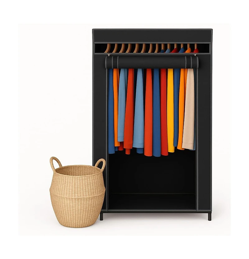 This portable wardrobe closet offers hassle-free, tool-free assembly, making it perfect for small spaces or on-the-go use. Built with a sturdy frame and a heavy-duty hanging rod that supports up to 65 lbs, it also includes a breathable beige cover to protect clothes from dust and damage. Its compact 64”H x 36”W x 19.5”D design fits seamlessly into apartments, dorms, or guest rooms. Both functional and stylish, it s an ideal solution for organized, space-saving storage.