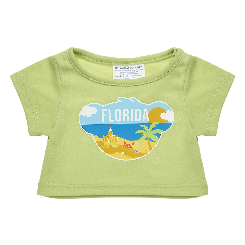 Showcase your love for the Sunshine State with this Florida tee for your furry friend! The green stuffed animal T-shirt includes a sunny Florida beach scene inside a bear head.