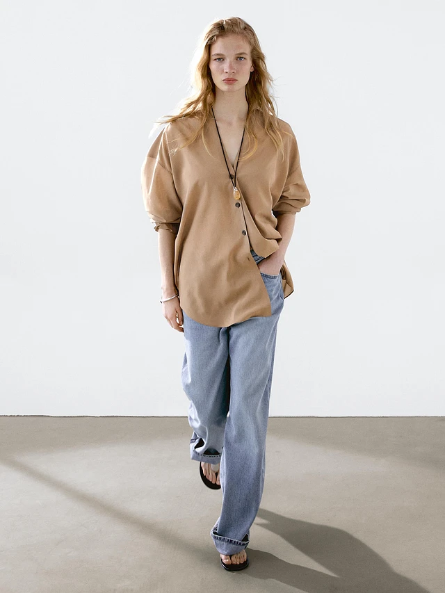 100% linen flowing blouse with open neck