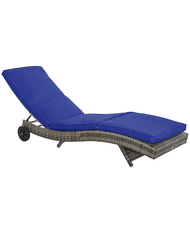 Inolait Patio Pe Rattan Chaise Lounge with 5-Level Backrest and Wheels