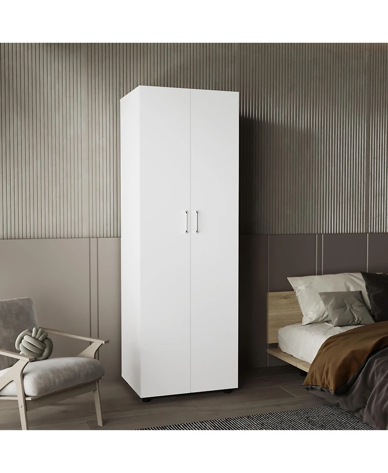 flynama Double Door Armoire with Two Interior Shelves, Hanging Rod and Metal Rack for Bedroom Clothes Storage