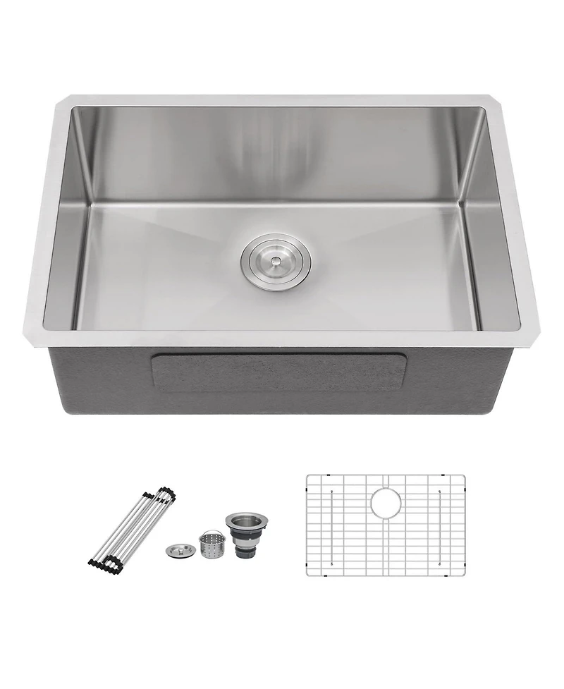 Add durable style and function to your kitchen with this 28 inch undermount sink expertly crafted from 16 gauge stainless steel Its 10 inch deep bowl efficient X shaped drainage and advanced soundproofing ensure a quiet seamless and reliable workspace for all your cooking needs