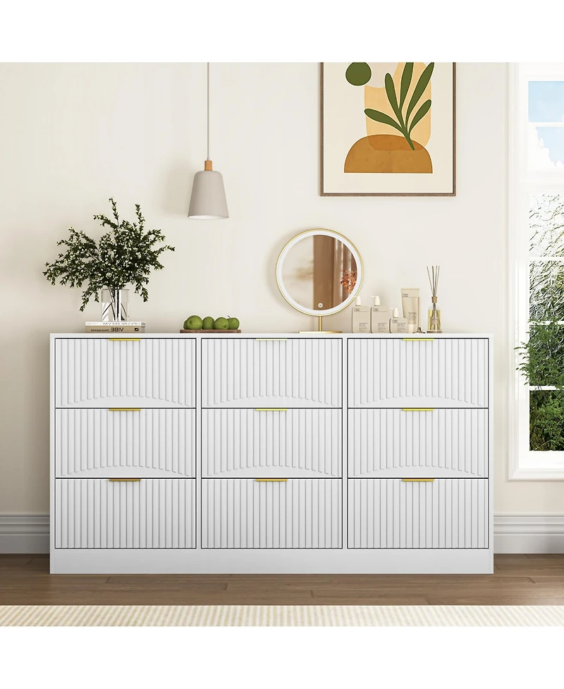 flynama Large 9 Drawer Dresser 63-Inch-Wide Wood with Handles for Bedroom Storage