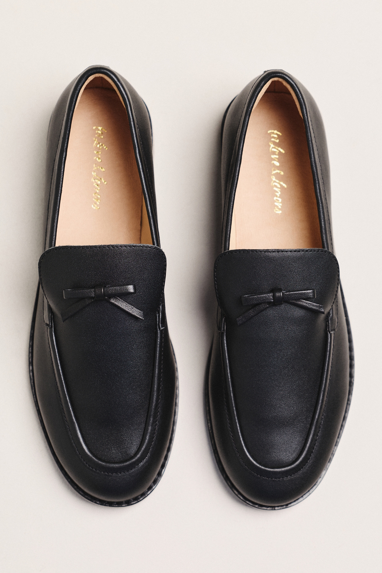 Crafted in a luxurious leather, the chic Helena loafers from For Love & Lemons have a classic silhouette and are adorned with a decorative bow.