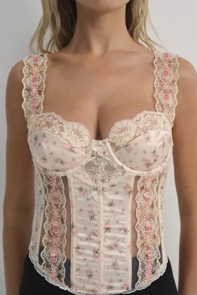 For Love & Lemons Rose Milk Embroidered Eyelet Bustier