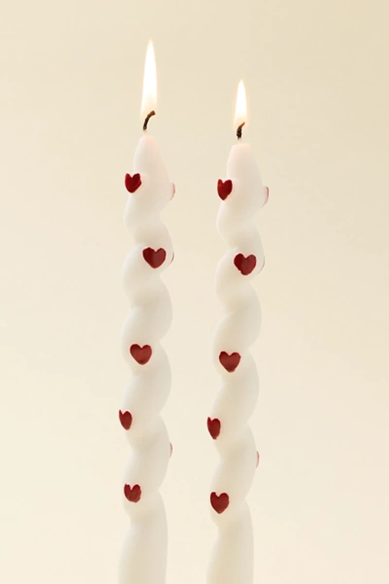 Perfect for designing a whimsical tablescape, these taper candles feature a swirling silhouette with allover heart icons accents. To get your candle to fit in your favorite taper candle holder, simply melt the base to the necessary size. Available exclusively at Urban Outfitters.