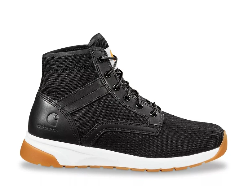 Get the feel of a sneaker while getting your job done in the Force Work Soft Toe boot. This sneaker boot comprises lightweight knit upper, protective abrasion resistant heel and toe counter, Rain Defender technology for light rain conditions, sweat-wicking FastDry Technology lining, injury-reducing INSITE technology footbed, and slip & oil-resistant Carhartt FORCE rubber sole. Moreover, this soft toe lace-up boot meets and exceeds ASTM 2413-18 EH and ASTM F3445-21 SR standard.