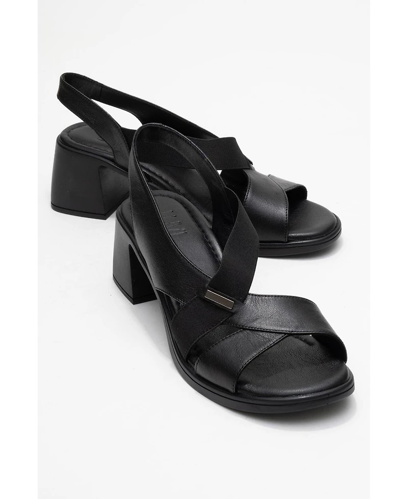 Forever & Always Shoes Crina Elasticated Leather Chunky Heel Sandal (Women)