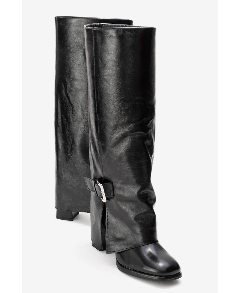 A sculptural patent-leather boot that blends modern edge with refined architectural details