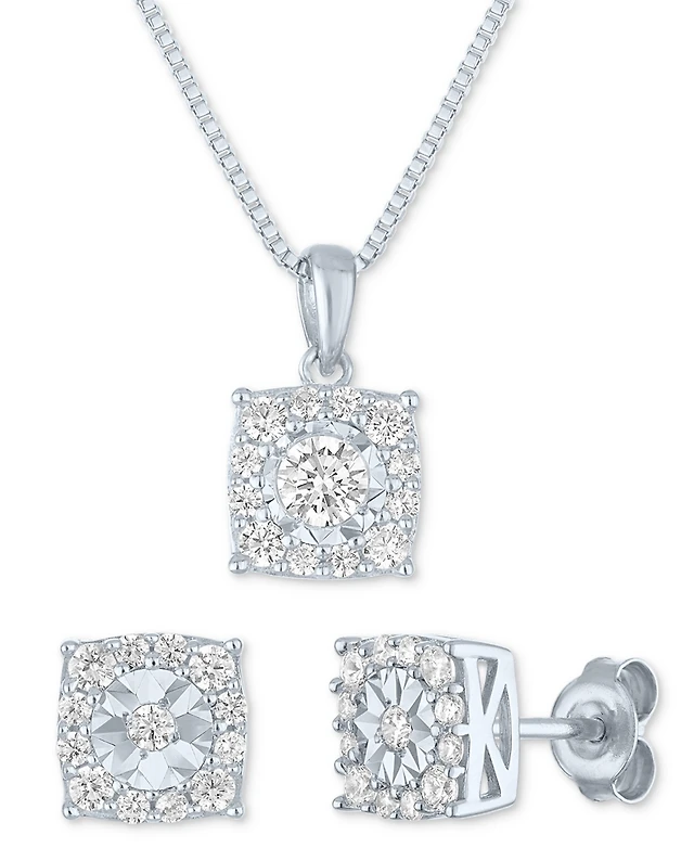 Forever Grown Diamonds 2-Pc. Set Lab Diamond Pendant Necklace & Matching Stud Earrings (1 ct. t.w.) Sterling Silver or 14k Gold-Plated Sterli